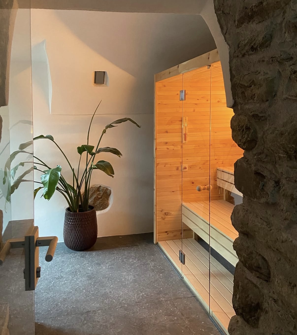 It features a comfortable double bed, a private bathroom with shower and a private sauna, offering the perfect space to unwind in complete privacy.